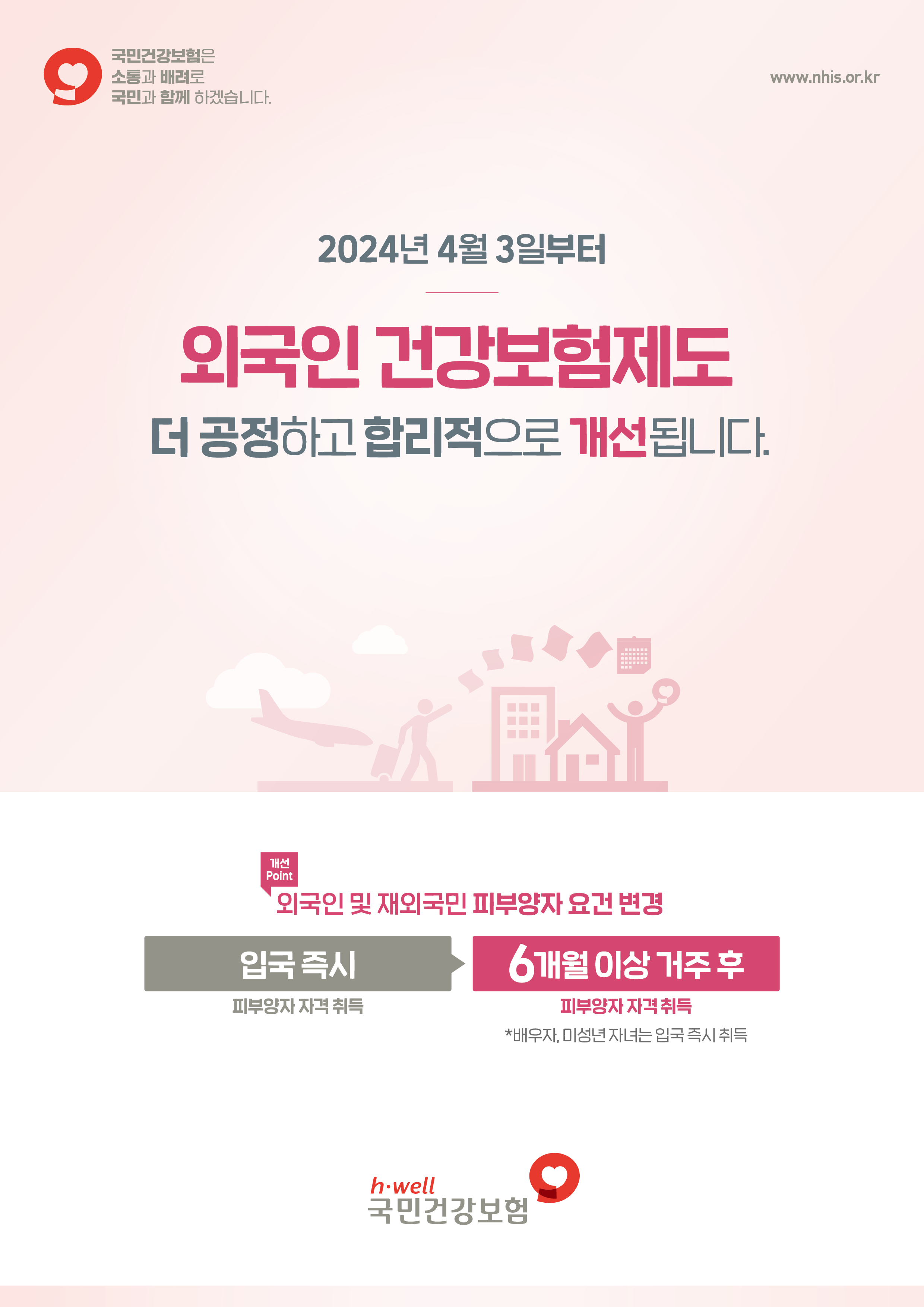 - 피부양자 자격요건 변경으로 외국인 및 재외국민은 입국 후 6개월 이상 한국내 거주 후 피부양자 자격 부여